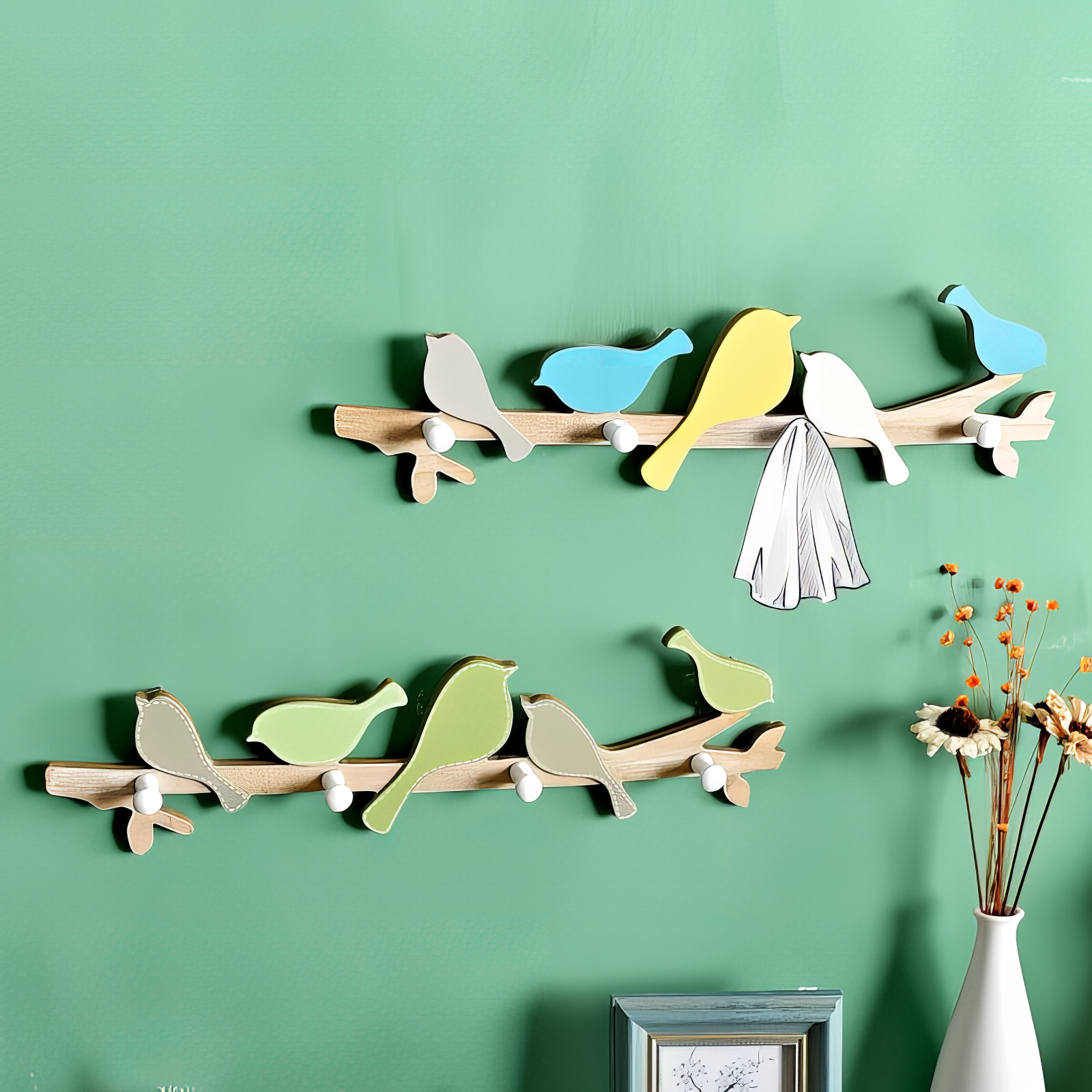 Apportez une touche de nature et de fantaisie à votre intérieur avec ce porte-manteau mural en bois. Ses adorables oiseaux colorés, perchés sur une branche, en font une pièce à la fois décorative et fonctionnelle.
