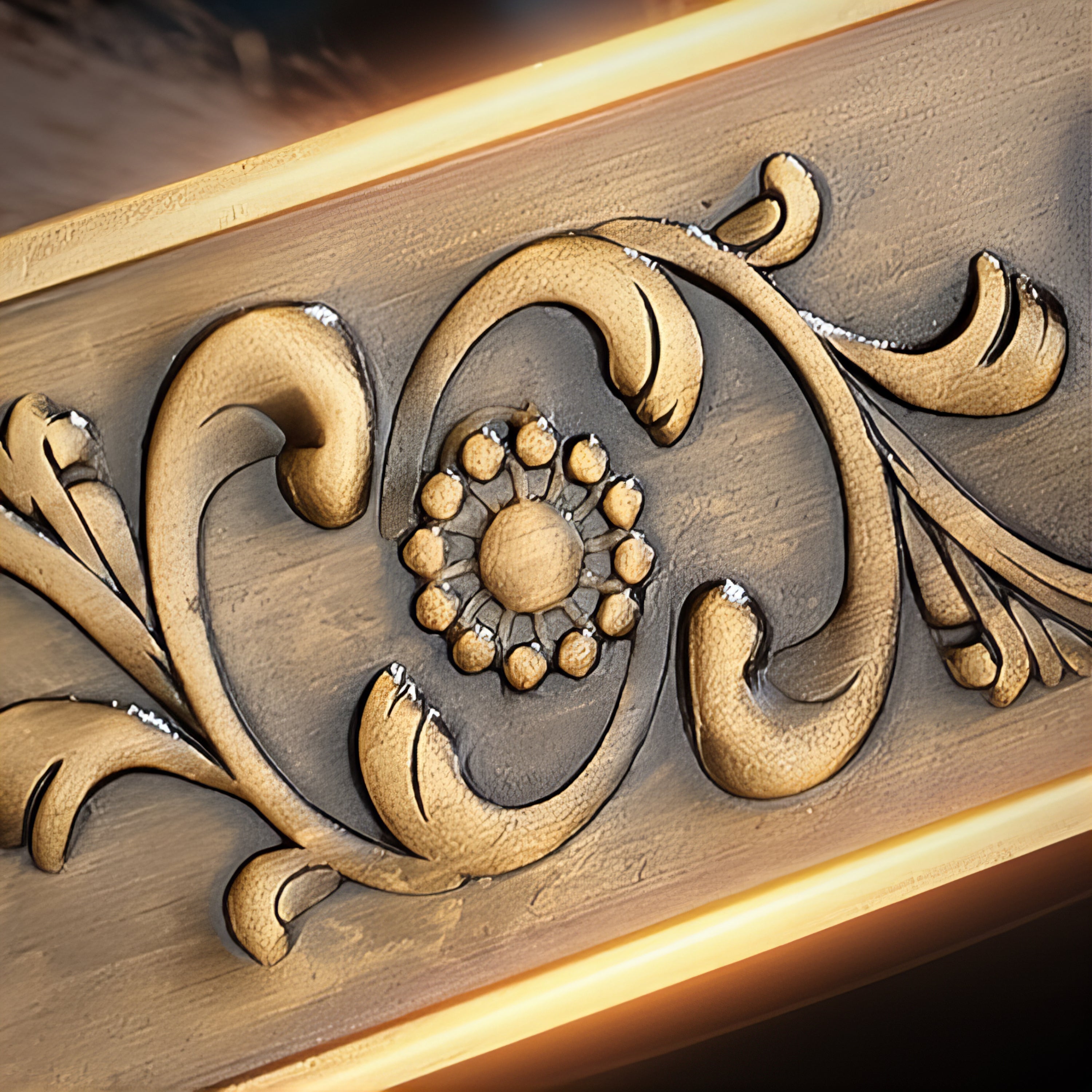 Couleur disponible : Doré antique (style bronze patiné) avec reliefs baroques finement travaillés.