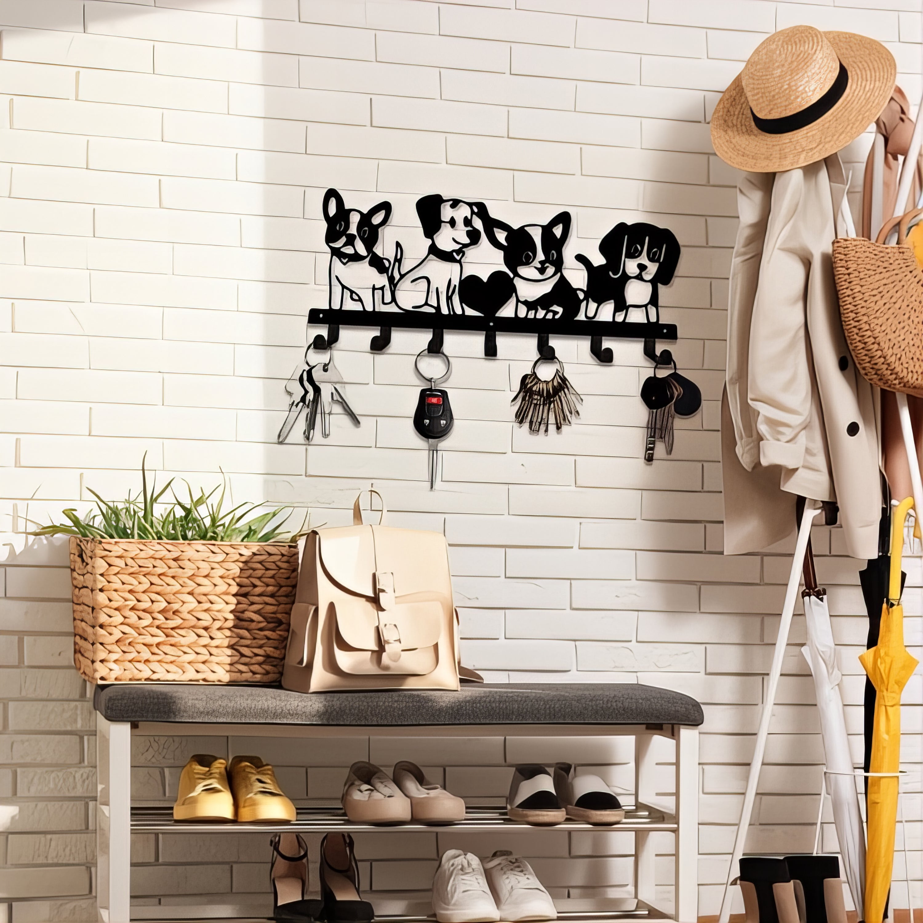 Ajoutez une touche de tendresse à votre intérieur avec ces adorables chiens qui veillent sur vos essentiels. Chaque regard vers ce support mural vous arrache un sourire, tout en vous aidant à garder vos objets du quotidien à portée de main.