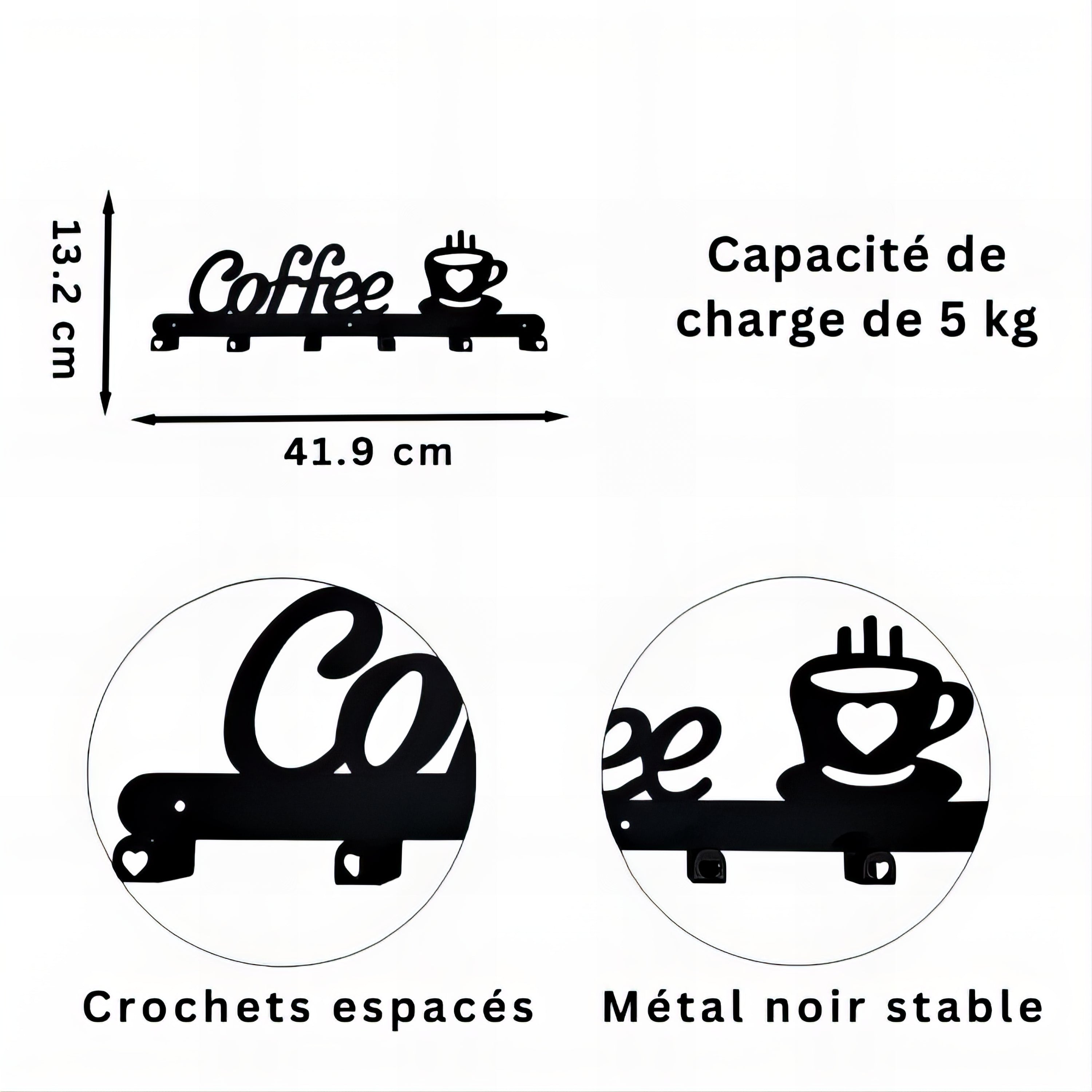 Facile à fixer, ce support devient en quelques minutes le nouveau complice de votre rituel café. Et comme chaque détail compte : les crochets au petit cœur ajouré ne sont pas juste mignons — ils tiennent fermement vos anses sans les abîmer.