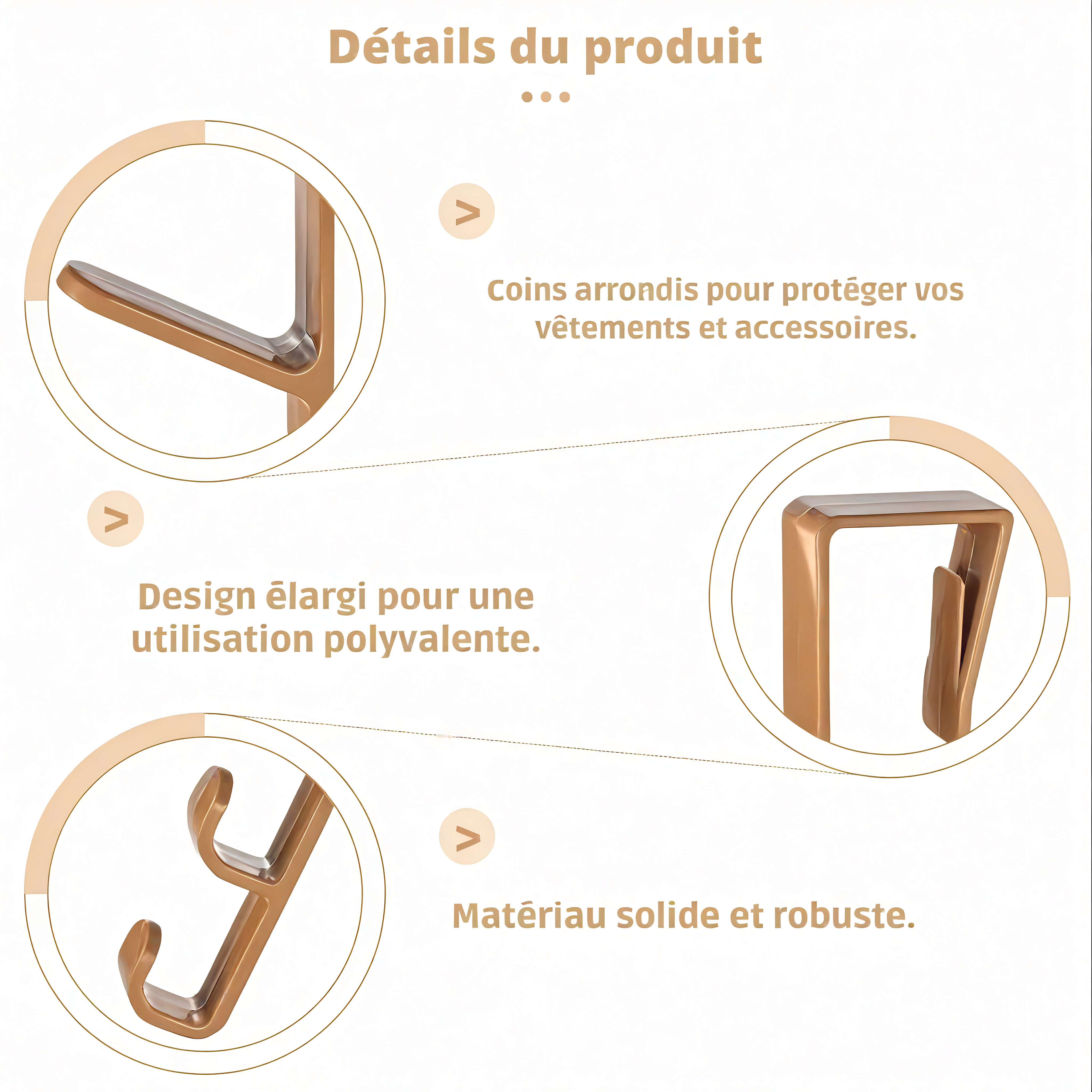 Accrochez ce crochet en quelques secondes, sans perçage ni outils. Profitez instantanément d’un rangement pratique et organisé pour vos vêtements, sacs et accessoires, tout en libérant de l’espace au sol.